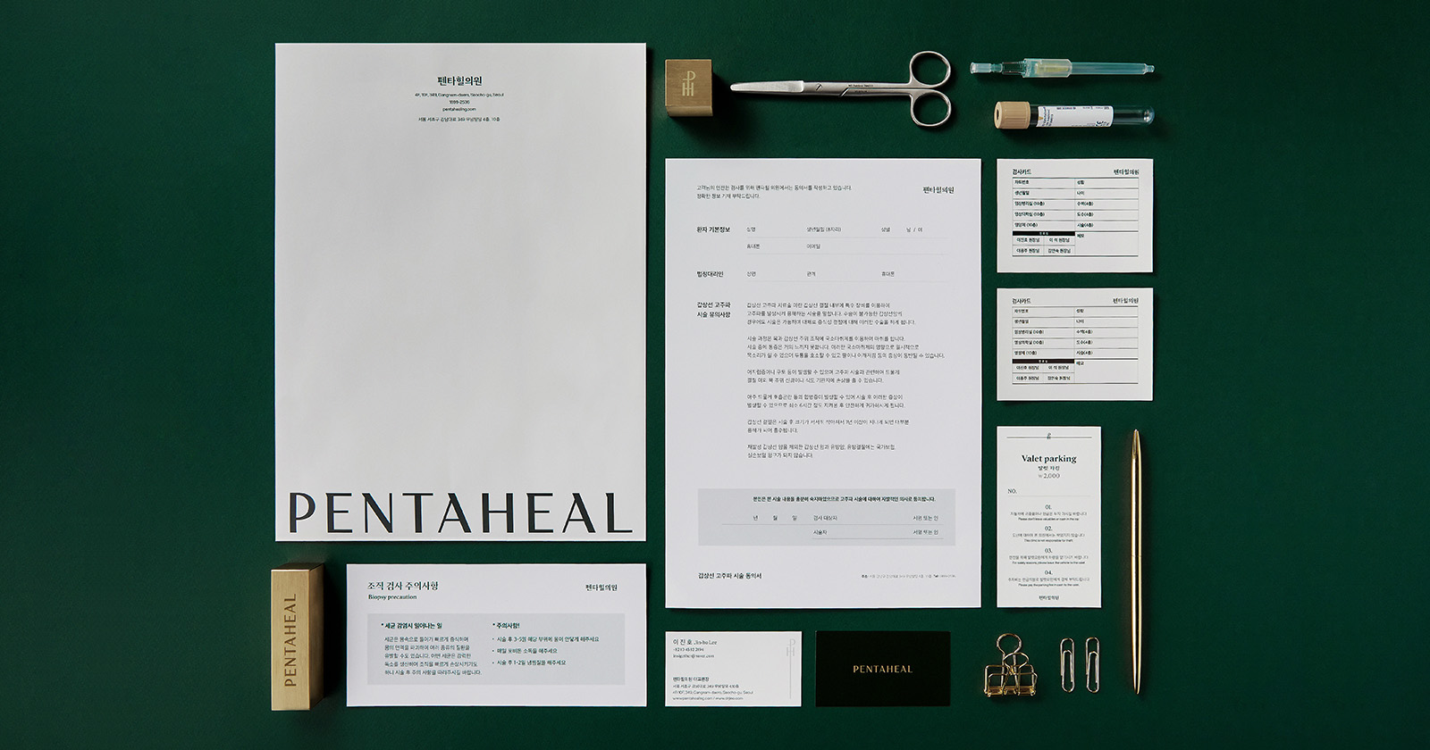 Conceived from the universal medical symbol 'Cross(+)', Eidetic proposed a solution that would maintain Pentaheal’s clinical image and improve the brand’s identity with better readability and suitability. The motif’s sprawling lines from the vertical and horizontal axis, express Pentaheal’s expandability within its service area and discipline. In doing this, we developed a consistent brand design that would deliver and communicate Pentaheal’s philosophy to the vast public.